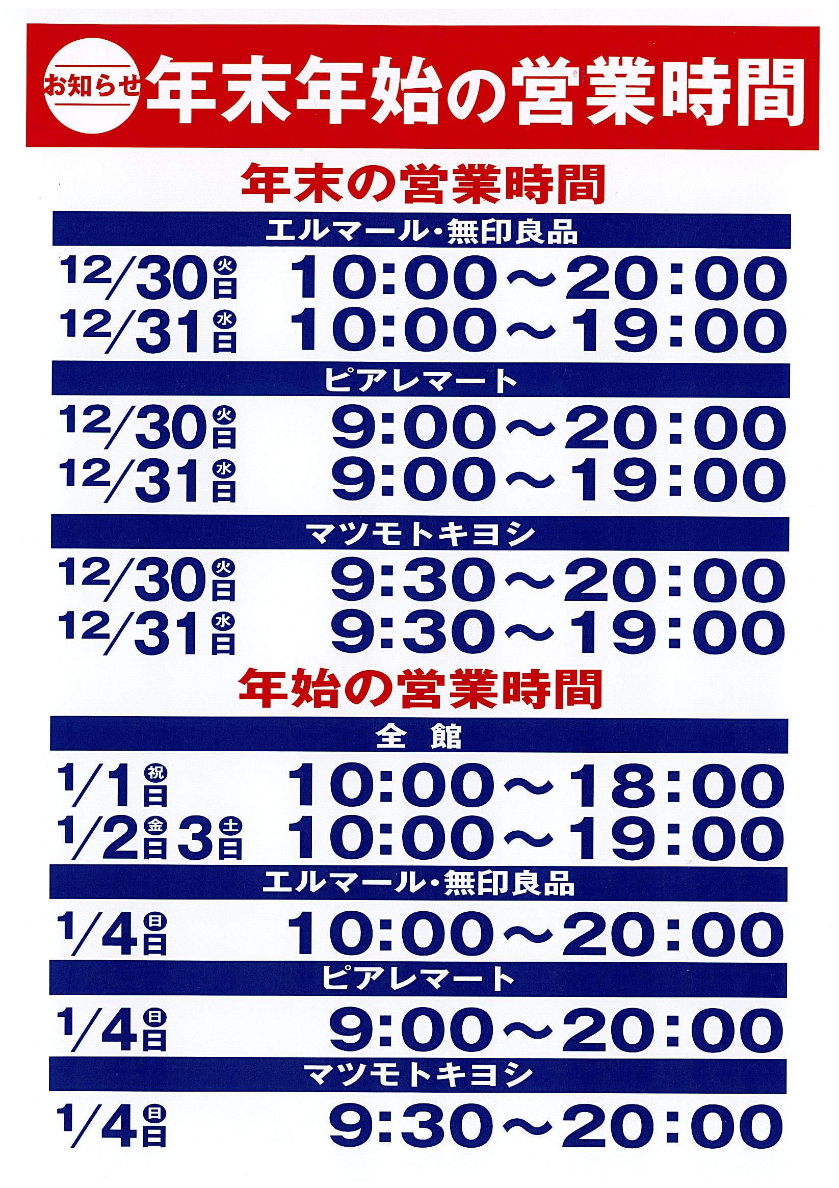 ~年末年始の営業時間のお知らせ~